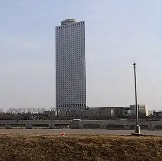- (en) Cet article est partiellement ou en totalité issu de l’article de Wikipédia en anglais intitulé « Yanggakdo International Hotel » (voir la liste des auteurs).