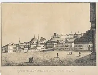 L'attribution exacte de l'époque et de l'auteur des plans est inconnue. L'édifice d'aujourd'hui est indiqué sur le plan directeur de Nijni Novgorod en 1852-1853 comme une maison en pierre avec un territoire immobilier établi, qui a survécu à ce jour sous presque la même forme que celle indiquée sur le plan. La façade de la maison à cette époque est connue d'après un dessin de Bystritski sur une gravure intitulée «L'église Saints-Côme-et-Damien de la place Sofronovskaïa», publiée dans le livre de l'historien local N.I. Khramtsovski. Malgré le fait que les détails de la décoration de la façade sur la lithographie soient peu distinguables, les experts la déterminent par certaines caractéristiques (nombre d'étages, nombre de fenêtres sur la façade, structure de la façade)[1].