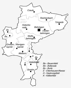 La commune de Hörselberg-Hainich comprend 17 quartiers :