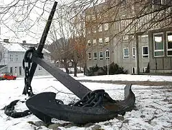 Hønefoss n'est pas connue pour être une ville portuaire. La vieille ancre posée devant l'hôtel de ville est un don des Pays-Bas et elle est un symbole de l'époque où Hønefoss abritait le premier bateau à vapeur norvégien.