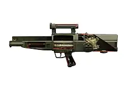 | Mode d'action | fusil à culasse pivotante, sélecteur de tir fonctionnant par emprunt de gaz (semi-auto, rafale de 3 coups, auto) |