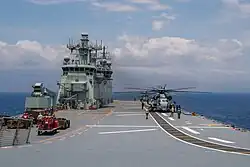 Il peut transporter 1 046 hommes de troupe avec leur équipement. Il possède deux ponts distincts ; l'un de 1 880 m2, l'autre de 1 410 m2 pouvant accueillir 110 véhicules. Il peut aussi transporter 4 LCM-1E ou 12 chars M1 Abrams. Le pont d'envol peut accueillir six hélicoptères NH90 ou quatre CH-47 Chinook ; huit SH-60 Seawak de lutte anti-sous-marine pourront être stockés dans le hangar de pont.