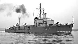 Le 5 janvier 1956, après des discussions avec la Bundesmarine (marine allemande fédérale) nouvellement formée, le Albrighton est l’une des sept frégates sélectionnées pour être transférées et vendues à l’Allemagne de l’Ouest le 11 novembre 1957. Il est réaménagé à Liverpool avant d’être mis en service dans la marine ouest-allemande sous le nom de Raule (F217) le 14 mai 1959.