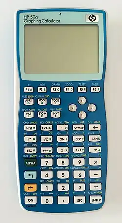 La HP-50g est une calculatrice graphique sortie en 2006 pour les étudiants et les professionnels en mathématiques et en sciences. Elle se caractérise par une fente pour carte SD, une saisie de données en mode RPN ou alphanumérique, un grand écran, une connectivité RS-232, IrDA et USB. Elle dispose aussi d'un « solveur » (HP Solve), de la programmation structurée et d'un module de calcul formel[1].