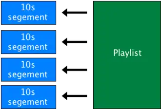 Il fonctionne en segmentant le flux multimédia en une séquence de petits fichiers (.ts ou MP4 iso segments). Ces fichiers sont ensuite lus dans une liste de lecture (playlist) de type M3U8.