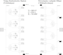 Le poste de conversion près de Volgograd est nommé Volzhskaya, celui en Ukraine Mikhailovskaya[1].