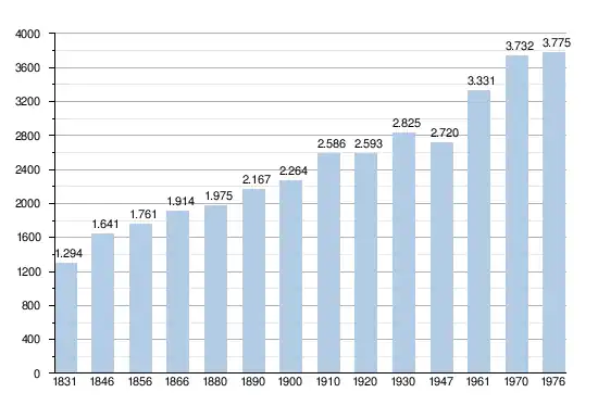 - Sources : INS, Rem. : 1831 jusqu'en 1970 = recensements, 1976 = nombre d'habitants au 31 décembre.