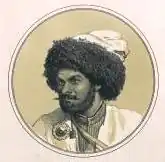 Ses exploits au combat et sa tenue lui valent le surnom de « diable rouge » donné par les Russes. Après un raid infructueux sur le camp russe de Temir-Khan-Choura, une rumeur court selon laquelle il aurait massacré tous les soldats hospitalisés pour en faire du chachlik (plat de viande en broche), qu'il aurait laissé derrière lui pour que les troupes russes les mangent en revenant à leur base. Bien que fantaisiste, la rumeur devient très populaire et accroît sa réputation.