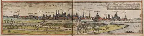 - ↑ Fritz Reuter: Der Sprung in die Moderne: Das „Neue Worms“. In: Geschichte der Stadt Worms. Hrsg. i. A. der Stadt Worms von Gerold Bönnen (de). Theiss, Stuttgart 2005, (ISBN 3-8062-1679-7). S. 496–498.