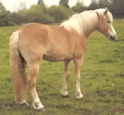 - ↑ (en) G. Galizzi-Vecchiotti, « A note on inheritance of the coat colour in the Haflinger horse. 1 - flaxen mane and tail », Ippologia no 2, 1991, p. 61-63.