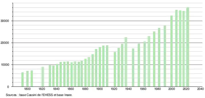 L'occupation des sols de la commune, telle qu'elle ressort de la base de données européenne d’occupation biophysique des sols Corine Land Cover (CLC), est marquée par l'importance des forêts et milieux semi-naturels (84 % en 2018), une proportion sensiblement équivalente à celle de 1990 (84,5 %). La répartition détaillée en 2018 est la suivante : forêts (71,4 %), milieux à végétation arbustive et/ou herbacée (12,6 %), zones urbanisées (5,2 %), zones industrielles ou commerciales et réseaux de communication (3,5 %), zones agricoles hétérogènes (3,5 %), terres arables (2,2 %), prairies (1,2 %), mines, décharges et chantiers (0,2 %), espaces verts artificialisés, non agricoles (0,1 %)[36]. L'évolution de l’occupation des sols de la commune et de ses infrastructures peut être observée sur les différentes représentations cartographiques du territoire : la carte de Cassini (XVIIIe siècle), la carte d'état-major (1820-1866) et les cartes ou photos aériennes de l'IGN pour la période actuelle (1950 à aujourd'hui)[Carte 3].