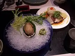 La cuisine japonaise utilise l’ormeau, vivant et cru (en awabi sushi) ou cuit de diverses manières, ou fermenté (dans le tottsuru). Il s’agit de l’Haliotis gigantea (jap. 雌貝(鮑), megai (awabi), ou du plus courant Haliotis japonica (syn. Sulculus diversicolor supertexta syn. Haliotis diversicolor supertexta, jap. 床臥/常節, Tokobushi), également utilisable comme élément de Noshi (origami), cadeau traditionnel de départ.