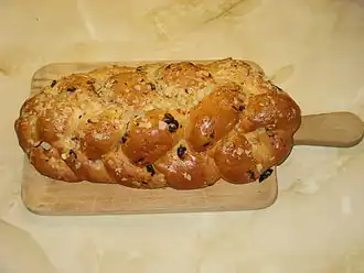 À Rosh Hashana, le Nouvel An juif, des raisins, du miel, des pommes, peuvent être rajoutées à la pâte qui n'est pour la circonstance pas tressée, mais enroulée, afin de symboliser le cycle de l'année. La ressemblance avec la brioche est particulièrement frappante.