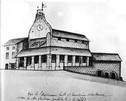 En 1840, un incendie ravage la maison commune de la ville, bâtiment construit en 1591, qui comprenait une halle, une partie dédiée aux affaires communales, et en contrebas, dans la rue Matabiau (actuelle rue Montebello), les boucheries, dont les abattoirs. L’édifice était surmonté d’un clocher-mur et les piliers de sa halle intégraient, juxtaposés deux à deux, les autels tauroboliques découverts lors des travaux du chœur de la cathédrale cinquante ans auparavant. Il se situait dans une position stratégique au cœur de la ville, entre le château et la cathédrale Saint-Gervais, à côté de la sénéchaussée, du temple protestant, de l’hôtel du gouverneur, du couvent des Cordeliers.
