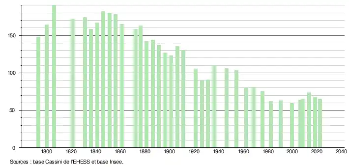 - ↑ Population municipale de référence en vigueur au 1er janvier 2025, millésimée 2022, définie dans les limites territoriales en vigueur au 1er janvier 2024, date de référence statistique : 1er janvier 2022.