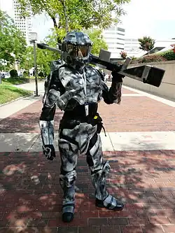 - ↑ (en) « … a genetically enhanced super soldier picking up two guns and kicking some alien butt. »