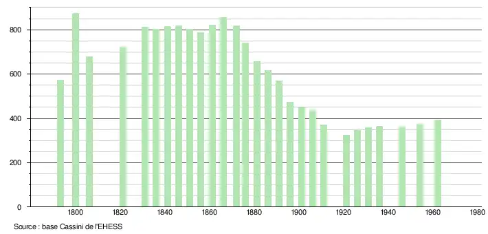 Jusqu'en 1965, la démographie de Hamégicourt était :