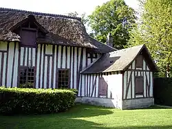 Puis, en 1774, le prince fit construire un hameau de sept chaumières d'aspect rustique, inspirées du style architecturale de la Normandie orientale, dont cinq subsistent encore aujourd'hui. Elles sont identifiées chacune d'un nom particulier : le Salon, le Billard, la Salle à manger, la Cuisine, le Moulin. L'Étable et le Cabinet de lecture ont disparu. Le contraste entre leur aspect rustique et les aménagements intérieurs richement décorés provoquait la surprise et l'étonnement des invités. Le succès et la renommée de ce hameau d'agrément inspirèrent la reine Marie-Antoinette pour son Hameau de la Reine dans les jardins du Petit Trianon à Versailles[2]. La Révolution préserva le hameau qui fut restauré par le duc d'Aumale à partir de son retour à Chantilly en 1870.