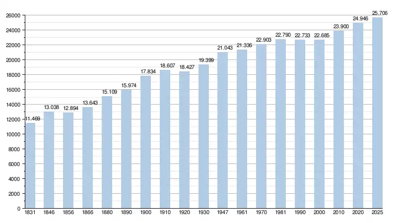 - Source : DGS - Remarque: 1831 jusqu'à 1981=recensement; depuis 1990=nombre d'habitants chaque 1er janvier[5]