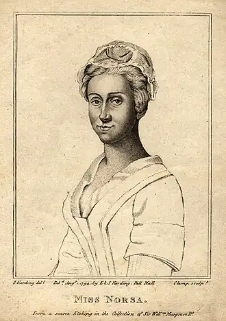 En 1736, elle passe sous la protection de Robert Walpole, fils et héritier de l'ancien premier ministre Robert Walpole et frère de l'écrivain Horace Walpole. Horace décrit Norsa comme "la concubine de mon frère"[2]. Le mariage de Robert est rompu lors d'une séparation formelle, et Norsa va vivre avec lui, déménageant (quand il accède à la pairie en tant que comte d'Orford en 1745) à Houghton Hall dans le Norfolk. La femme d'un ecclésiastique local écrit d'elle en 1749 : « C'est une femme très agréable, et personne ne s'est jamais mieux comporté dans sa situation, elle a la bonne parole de tout le monde et a une grande emprise à Houghton, elle est tout sauf Lady, elle est venu ici dans un Landau & Six chevaux & ... un jeune ecclésiastique avec elle. »[1] Norsa a un fils avec Orford, né en 1740, qui est apparemment mort jeune[3]. L'historien de la musique David Conway considère l'histoire de Norsa comme « un récit archétypal de la façon dont la célébrité sur scène pourrait conduire à une transformation sociale »[2].