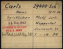- ↑ Hans Carls : Dachau, Erinnerungen eines katholischen Geistlichen aus der Zeit seiner Gefangenschaft 1941- 1945, Cologne, 1946