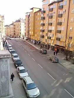 Hantverkargatan avec l'hôtel de ville de Stockholm au fond. | |