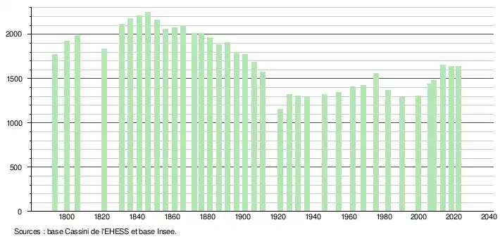 - ↑ Population municipale de référence en vigueur au 1er janvier 2025, millésimée 2022, définie dans les limites territoriales en vigueur au 1er janvier 2024, date de référence statistique : 1er janvier 2022.