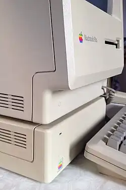 - ↑ Peter H. Lewis, « Peripherals; Apple Gives Its Macintosh A Hard Disk », The New York Times, (lire en ligne, consulté le )