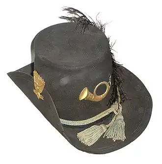 Le règlement de l'armée américaine précisait que le chapeau devrait être orné d'un insigne de chapeau en laiton et d'un cordon de chapeau en laine désignant la branche de service de l'utilisateur : le bleu ciel pour l'infanterie, rouge écarlate pour l'artillerie, jaune pour la cavalerie. Le bord devait être épinglé sur le côté droit pour les cavaliers et les artilleurs, et sur la gauche pour les soldats d'infanterie.