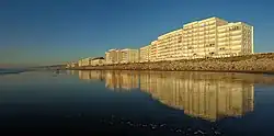 - d'un front de mer de 8 375 mètres[4] avec une digue, des dunes et une plage (allant d'Écault au nord à Dannes au sud) ;