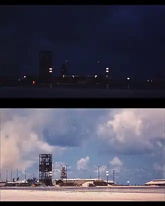 - ↑ (en) [vidéo] Dan Beaumont Space Museum, « Redstone rocket, Hardtack-Teak test, August 1958 », sur YouTube, (consulté le ).