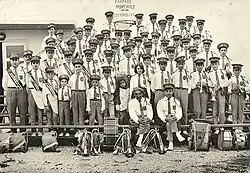 Plus spécifiquement, par ailleurs, dans le Bassin minier du Nord et du Pas-de-Calais[1], durant trois siècles, les compagnies minières puis les houillères nationales ont une très forte emprise sur la vie des hommes et de leur famille. Professant que « des aptitudes physiques et une hygiène de vie saine [sont] appréciables pour qui veut disposer de bons ouvriers », elles initient et perpétuent des pratiques de loisirs. Ainsi se développe dans tout le bassin minier, à côté du jardinage, de la colombophilie et des sports, une pratique musicale particulièrement florissante. « Dès 1860, la majorité des Compagnies possède plusieurs sociétés musicales. Ces sociétés se répartissent principalement en trois groupes : l’harmonie, la batterie-fanfare et la fanfare. Les Compagnies paient tous les frais, que ce soit les uniformes ou les instruments. Ces sociétés musicales sont de toutes les fêtes et manifestations. Ainsi, le de chaque année, lors de la fête de la Sainte-Barbe, patronne des mineurs, les harmonies jouent de la musique et les Compagnies organisent un banquet. Cette activité ne s’est pas éteinte avec la fermeture des puits. » Les harmonies, fanfares et batteries-fanfares sont toujours un facteur culturel important du Bassin minier. Avec le soutien des municipalités, les sociétés musicales se renouvèlent en formant des jeunes via les écoles de musiques et en élargissant leur répertoire[2].