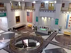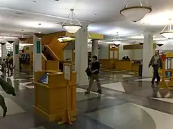 Le centre du hall offre une vue sur le deuxième niveau et le sous-sol qui abrite un auditorium de 385 places, une salle de réception, un théâtre audio-visuel et des salles de réunion. Sur son mur nord, on peut admirer une mosaïque de Jacob Lawrence intitulée Events in the Life of Harold Washington (en français : « La Vie de Harold Washington »). Elle représente les étapes de la vie de l'ancien maire comme ouvrier du Civilian Conservation Corps, soldat, avocat, membre du Congrès des États-Unis et comme maire de Chicago. Chacune de ces étapes est représentée sous la forme de pages de livres ouverts sur son bureau. Les pages forment une pile dont le sommet représente l'élection de Washington en tant que premier maire afro-américain de la ville.