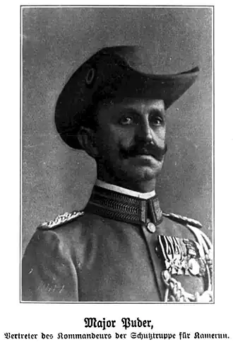 En 1906, Puder fut muté au commandement des troupes de protection au sein de l'Office impérial aux Colonies et, en octobre de la même année, il fut chargé de remplacer le commandant de la troupe de protection du Cameroun, Wilhelm Mueller (de). C'est au Cameroun que Puder trouva son principal champ d'action à partir de 1906. Après sa nomination formelle au poste de commandant le 18 février 1908, il dirigea les opérations militaires visant à soumettre les sociétés Tiv établies à la frontière ouest du district de Bamenda ("expédition Alkasom-Muntschi" au printemps 1908) et à intégrer la région de Bafia dans l'organisation administrative allemande (1911). Des tensions existaient à cette époque entre lui et le gouverneur Karl Ebermaier, qui se manifestèrent notamment lors du voyage du gouverneur dans le nord de la colonie. Dans ce contexte, Puder critiqua la forte sollicitation des compagnies pour les besoins de l'administration civile et s'engagea fondamentalement pour une stricte séparation des tâches militaires et administratives. Peu après le retour d'Ebermaier sur la côte, Puder quitta la Schutztruppe.