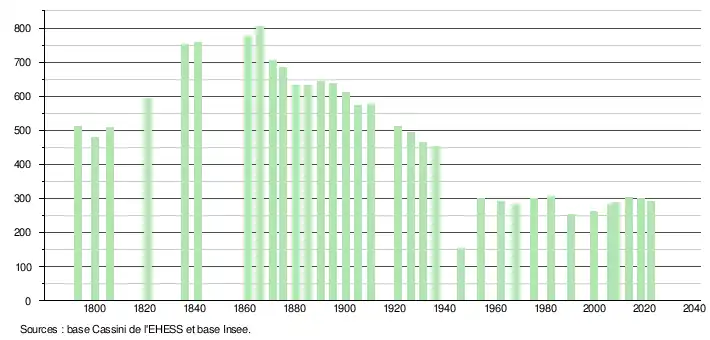 - ↑ Fiches Insee - Populations de référence de la commune pour les années 2006, 2007, 2008, 2009, 2010, 2011, 2012, 2013, 2014, 2015, 2016, 2017, 2018, 2019, 2020, 2021 et 2022.