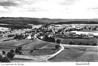 - Haspelschied (1544), Huspelschidt (1594), Hazpelschitt (XVIIIe siècle), Halspeschied ou Hanpelscheid (1756), Haspelscheidt[30], Haspelschille (1793), Haspelchitt (1801), Haspelscheid (1871-1918).