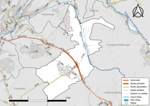 Les communes limitrophes sont Chenières, Herserange, Hussigny-Godbrange, Mexy et Villers-la-Montagne.