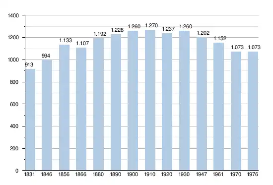 Sources: INS, Rem.: 1831 jusqu'en 1970 = recensements, 1976 = nombre d'habitants au 31 décembre.