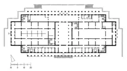 Le bâtiment est construit avec l'utilisation d'une symétrie stricte : technique du béton armé et de pierre pour l'intérieur du musée ; et du marbre pour l'extérieur. Le bâtiment a une longueur de 175 m et une largeur de 75 m ainsi qu'une hauteur de 30 m : ce qui montre que le musée est gigantesque. Les façades qui montrent vers la rue et sur le jardin sont constituées de portique de vingt colonnes et de deux piliers aux extrémités.