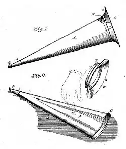 - ↑ Brevet GB 278098 Paul G.A.H. Voigt, "Améliorations des pavillons pour instruments acoustiques". [Pavillon tracté], (5 octobre 1927).