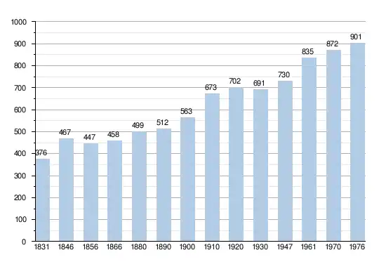 - Sources : INS, Rem. : 1831 jusqu'en 1970 = recensements, 1976 = nombre d'habitants au 31 décembre[2].