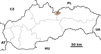 | Situation du massif à la frontière entre la Pologne et la Slovaquie. | ||