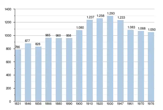 - Sources : INS, Rem. : 1831 jusqu'en 1970 = recensements, 1976 = nombre d'habitants au 31 décembre[3].