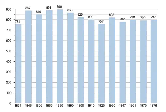 - Sources : INS, Rem. : 1831 jusqu'en 1970 = recensements, 1976 = nombre d'habitants au 31 décembre.