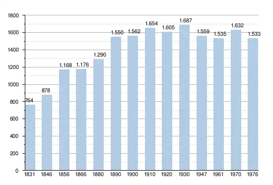 Les chiffres des années 1831 à 1970 tiennent compte des chiffres des anciennes communes fusionnées.