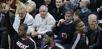 - ↑ (en-US) Tim Reynolds, « Pat Riley raves about Dwyane Wade, but avoids all contract talk », sur NBA, (consulté le )