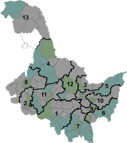 | Districts | Xians | Xians autonomes | villes-district | |||||||