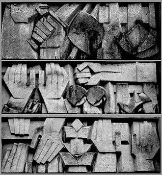- ↑ Fritz Richard Barran, Kunst am Bau heute: Wandbild, Relief und Plastik in der Baukunst der Gegenwart, J. Hoffmann, 1964, p. 162