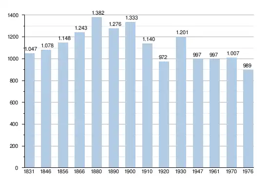 - Sources : INS, Rem. : 1831 jusqu'en 1970 = recensements, 1976 = nombre d'habitants au 31 décembre[5].