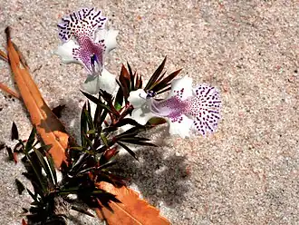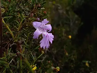 Il se présente de façon variable soit comme plante rampante soit comme buisson atteignant 1 mètre de hauteur. Les feuilles lancéolées, fortement pointues font jusqu'à 2,5 cm de longueur. Les fleurs ont une base tubulaire et deux lobes sur la lèvre supérieure, 3 sur la lèvre inférieure. Elles peuvent être de couleur rose, lilas, mauve ou blanc avec des taches contrastées dans la corolle. Les fleurs apparaissent toute l'année, mais plus intensément au printemps.